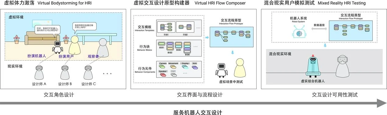 - Mixed Reality HRI Testing supports the usability testing phase. By combining virtual content with physical robot hardware through mixed reality, designers can conduct low-cost user testing in real-world environments without building full engineering prototypes.